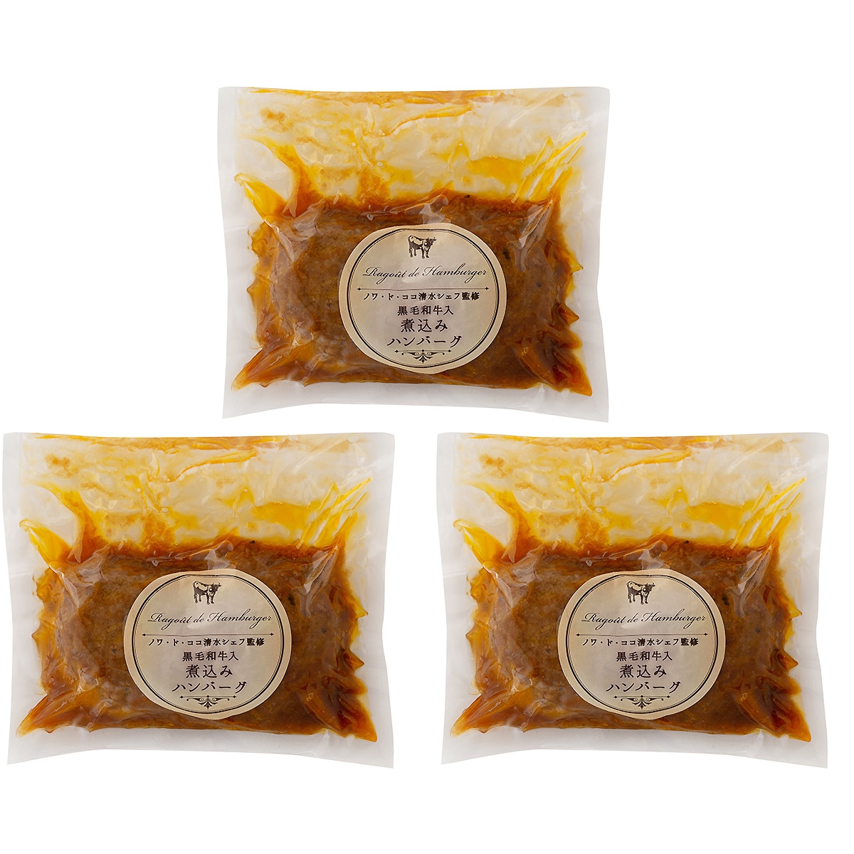 黒毛和牛煮込みハンバーグ280g(固形量90g×2、ソース100g入)×3(計6個)