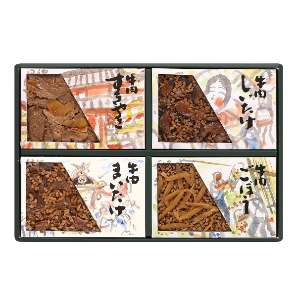 牛肉すきやき55g、牛肉ごぼう55g、牛肉まいたけ55g、牛肉しいたけ55g