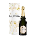 シャンパーニュ・ジャカールは格付けクリュ90%以上のブドウから造られており、まさにシャンパーニュの中のシャンパーニュと言えます。 毎年、品質の高いシャンパーニュを造り続けることができる理由は、醸造・販売契約を結んでいる1,000以上ものブドウ生産者の協同組合にあります。栽培面積2,200haは、AOCシャンパーニュ全体の8.2%。膨大なブドウの中から吟味・厳選したものだけを使用しています。また、15か月以上熟成させればノン・ヴィンテージと謳えるところを、敢えて3~4年熟成させた後に出荷するなど、他にはないこだわりも。世界中での高い評価は、世界トップクラスの航空会社やホテルでの採用や、コンクールでの受賞歴で裏付けられています。外観はヒスイの色味を帯びたゴールドのニュアンスを持つ淡い黄色。泡は細やか、フレッシュでややリッチなシャンパーニュであることが感じられます。口に含むと、レモンやオレンジなどの柑橘類のアロマが顕著な、濃厚でフルーツの砂糖漬けを思わせる味わいへと変化していきます。全体的には率直ですっきりとした、まろやかな味わいです。3年以上瓶内熟成、ドザージュ9g/L。