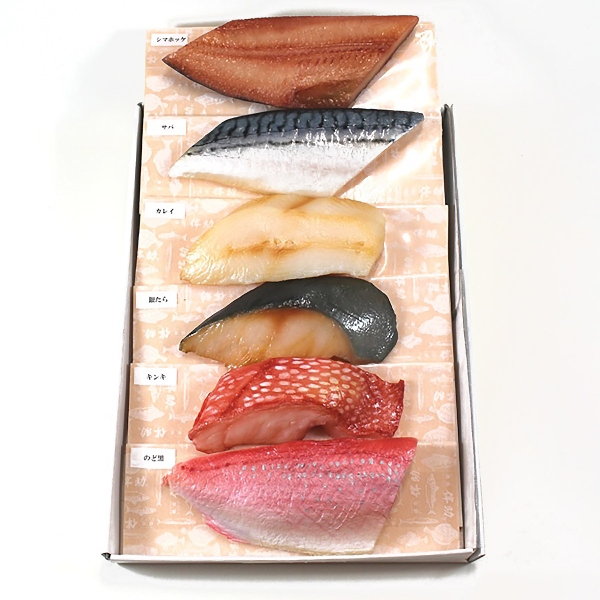 シマホッケ切身(1切)、サバ切身(1切)、カラスカレイ切身(1切)、キンキ切身(1切)、銀たら切身(1切)、のどぐろ切身(1切)