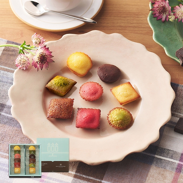 プティ・ガトー・アソルティ(フィナンシェ、マドレーヌ、キャラメル、抹茶)各2個、(ピスターシュ、フランボワーズ、ミルクチョコ、フレーズ)各1個