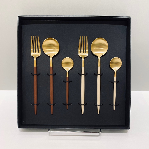 ≪クチポール (Cutipol)≫GOAデザート&ティースプーンセット(ブラウン×ゴールド&アイボリー×ゴールド)ギフトBOX入り