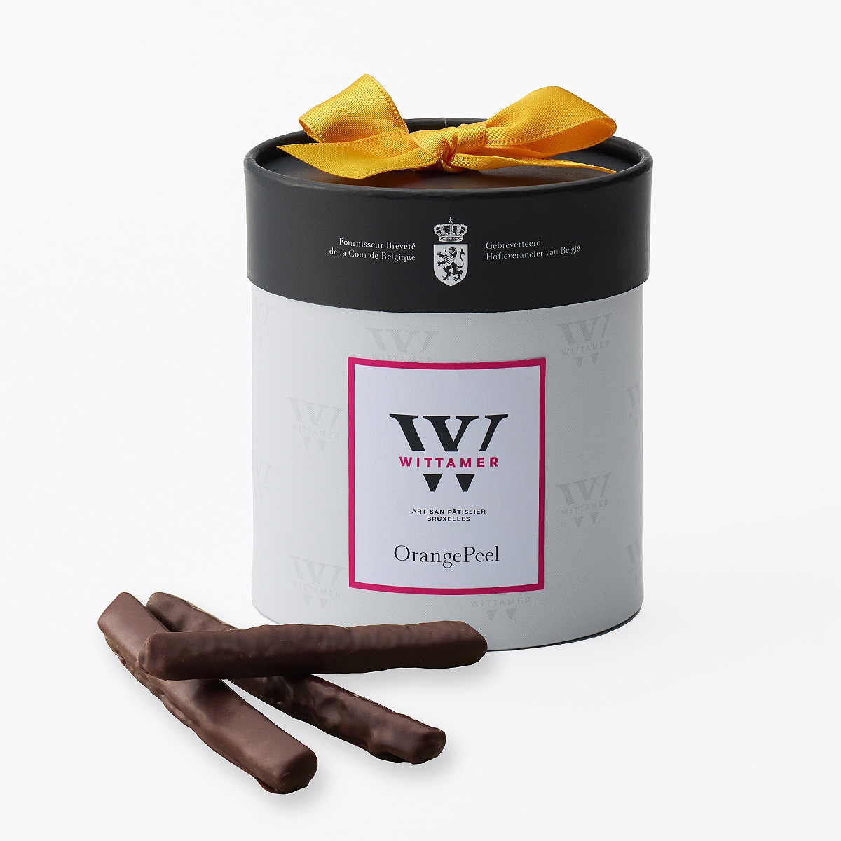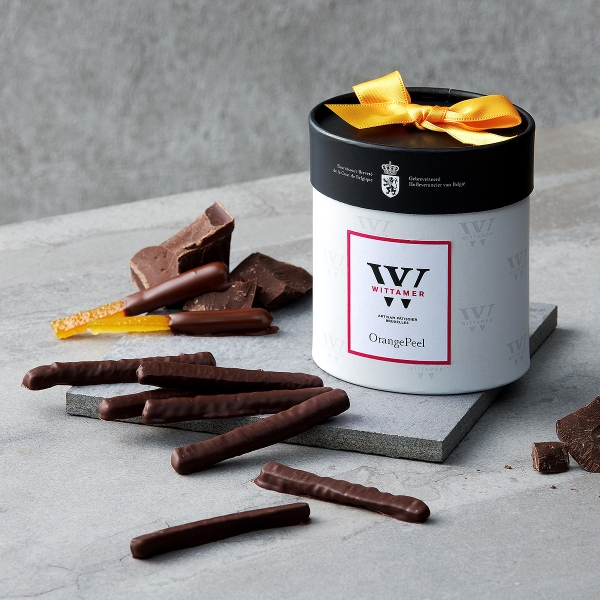 オレンジの皮をシロップに漬け込み、スイートチョコレートでコーティング。