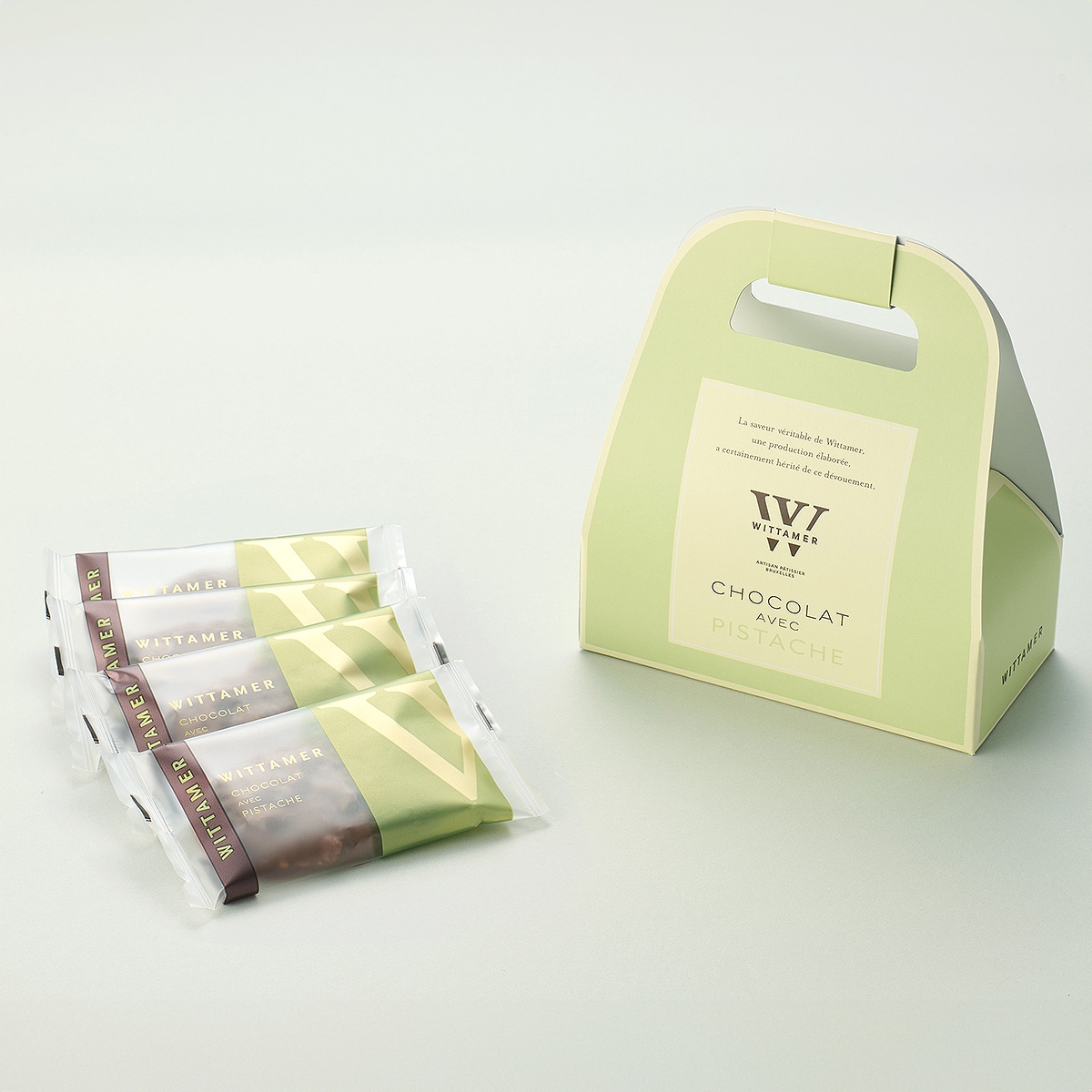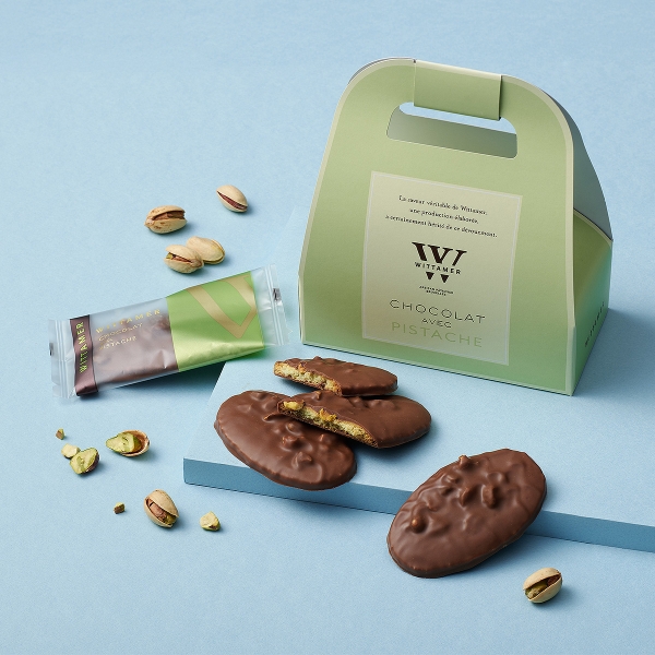 ピスタチオペーストを練り込んだサブレにピスタチオをのせてミルクチョコレートでコーティングしました。口どけのよいまろやかなチョコレートとサクサクのサブレ、ピスタチオの香ばしい味わいをお楽しみいただけます。