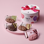 サクサクのサブレにナッツをのせてチョコレートでコーティング。定番のミルクとダークに期間限定のルビーとピスタチオ・ショコラの4つの味を詰め合わせた限定BOXです。