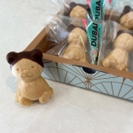 ミルクチョコレートのフードをかぶったくまもなかのなかに、ドバイチョコレートが入っています。4個入り。