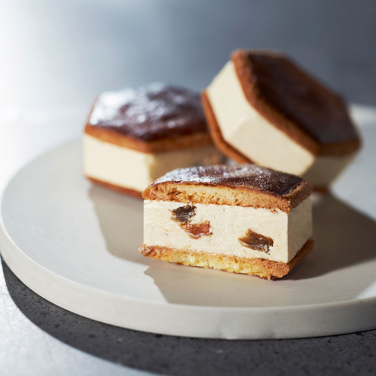 ミシュラン二つ星「フロリレージュ」川手シェフが手掛ける至高のバターサンド。焦がしバターを使ったクリームは口どけと芳醇な香りを追求し、試作を重ね完成。ラムレーズンには希少な国産ラム「イエラム サンタマリア ゴールド」を使用し、柔らかく奥深い味わいに。生地はガレットブルトンヌを採用し、香ばしさと重厚感、軽やかな余韻を両立させています。