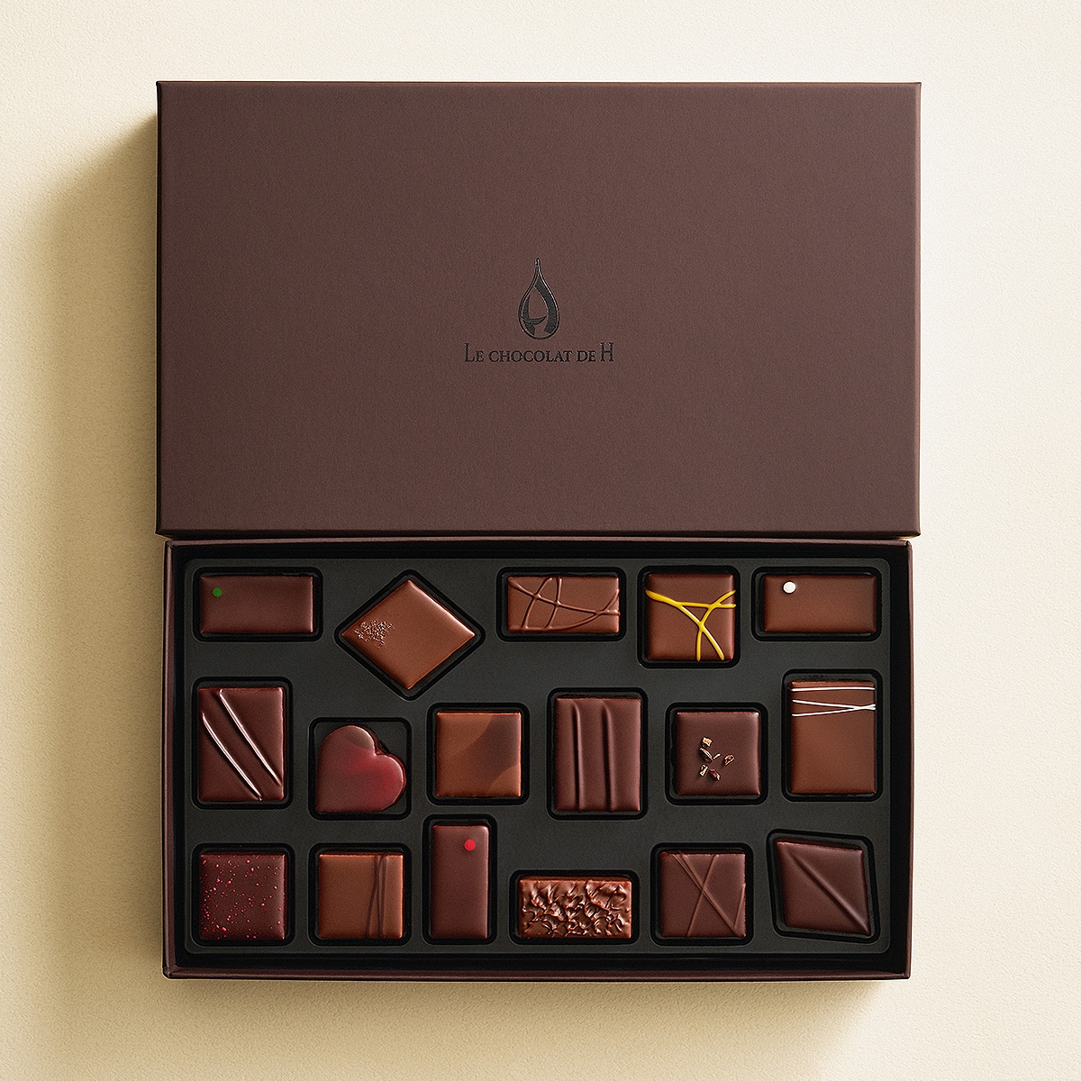 ショコラトリーが贈る至福のボンボンショコラ。フランス・パリで開催される世界最大級のチョコレートの祭典「サロン・デュ・ショコラ」 内で発表されるショコラ品評会「C.C.C.(Club des Croqueurs de Chocolat=クラブ・デ・クロクール・ドゥ・ショコラ=ショコラ愛好家の会)」で、最高位ゴールドタブレットを受賞したショコラを含む17種の詰め合わせ。素材の香りや風味を最大限に引き出し断面まで美しい極薄のエンロービング、口溶けと余韻にまでこだわった、繊細で独創的なボンボンショコラをお楽しみいただけます。