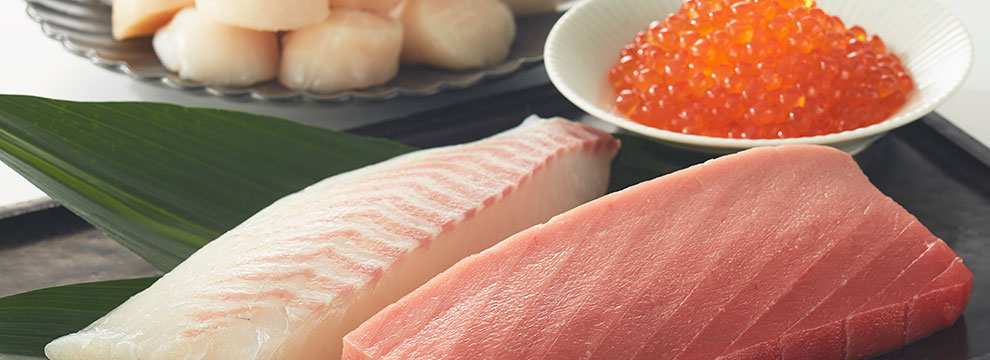 鮮度、旬、産地、ブランドにこだわり、お客さまにおいしいと言われる品揃えを目指す鮮魚専門店。利便性の高い加工製品や少量パッケージなど時代の変化に対応し、日本の魚食文化を伝えています。福岡県の長浜市場でベテランバイヤーが選んだ旬の魚を、市場開場時は航空便を使って、午前中に店舗に届けています。