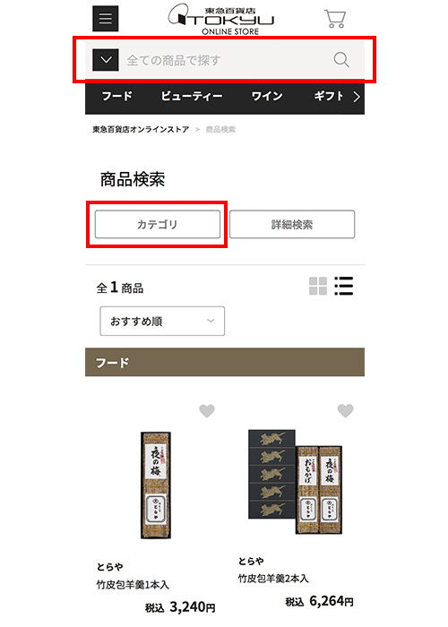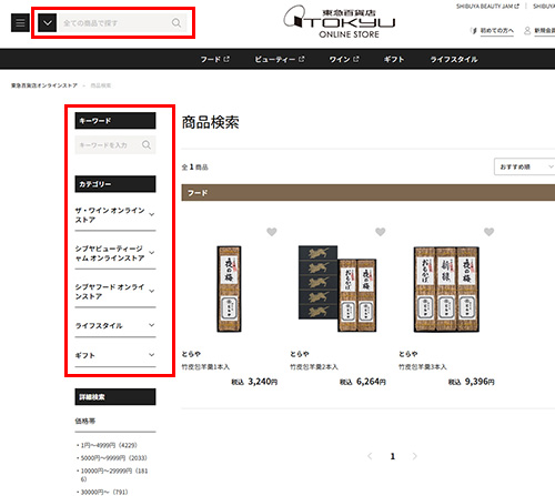 東急百貨店オンラインストアでは、「フード」「ビューティー」「ワイン」「ギフト・ライフスタイル」のサイトごとにトップページがあります。