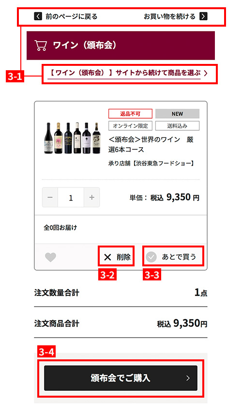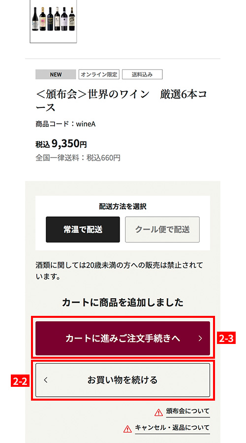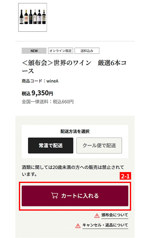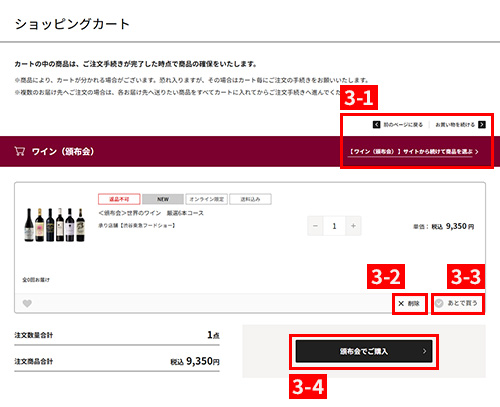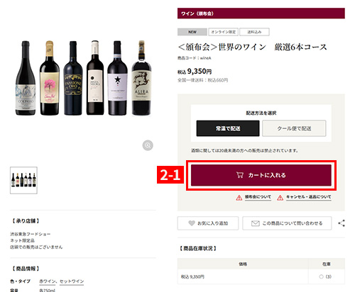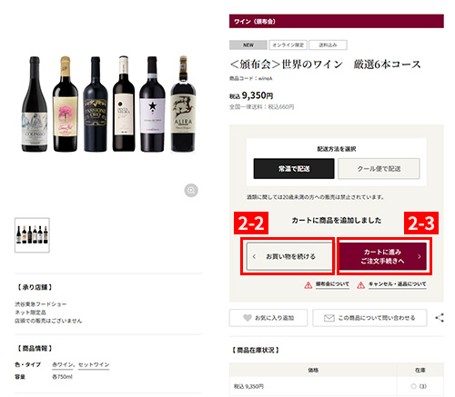 ※商品により、名称が変わる場合がございます。(例:ワインサイトから続けて商品を選ぶなど)
