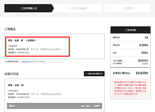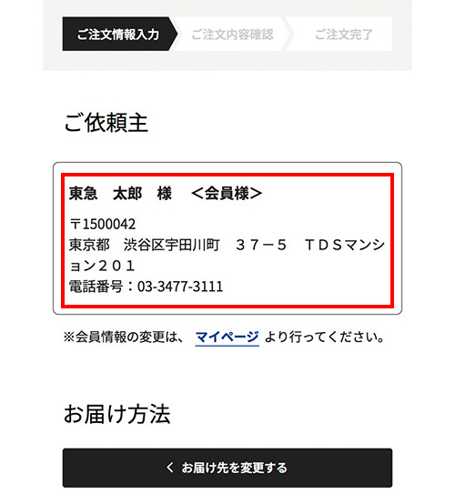 東急百貨店オンラインストアにご登録の会員情報が表示されます。