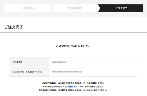 ご注文番号が表示されますのでご確認ください。