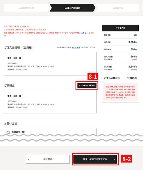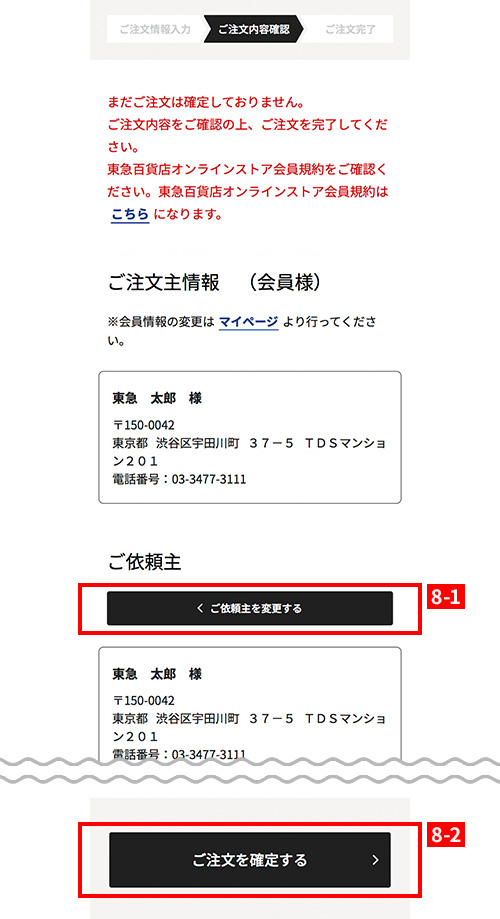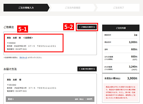 東急百貨店オンラインストアにご登録の会員情報が表示されます。