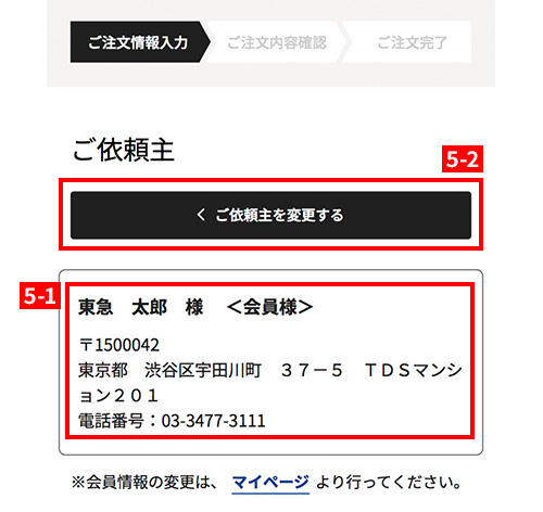 変更がある場合は、「ご依頼主を変更する」ボタンを押してください。