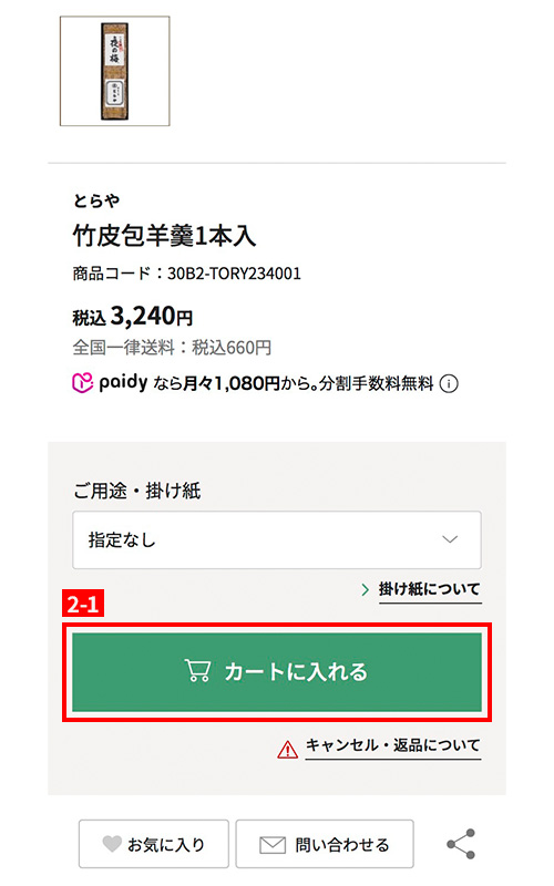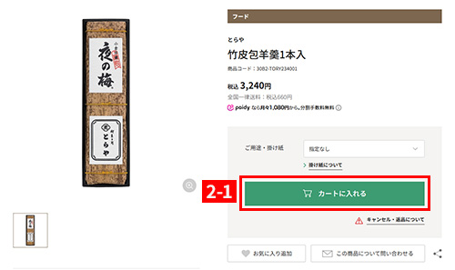 商品の詳細情報・注意事項などをご確認し、「カートに入れる」ボタンを押してください。